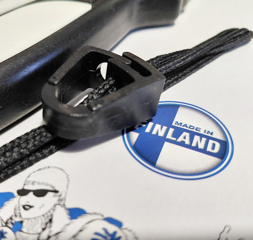 Twist jäänaskalit logolla valmistettu Suomessa. Paksukin jää voi olla virtauskohdissa pettävää ja jokaisella jäällä liikkuvalla pitäisi olla aina jäänaskalit mukana. Suomessa valmistetut Twist naskalit kulkevat säädettävän narun kanssa helposti kaulassa, jolloin ne ovat hädän sattuessa heti käsillä.