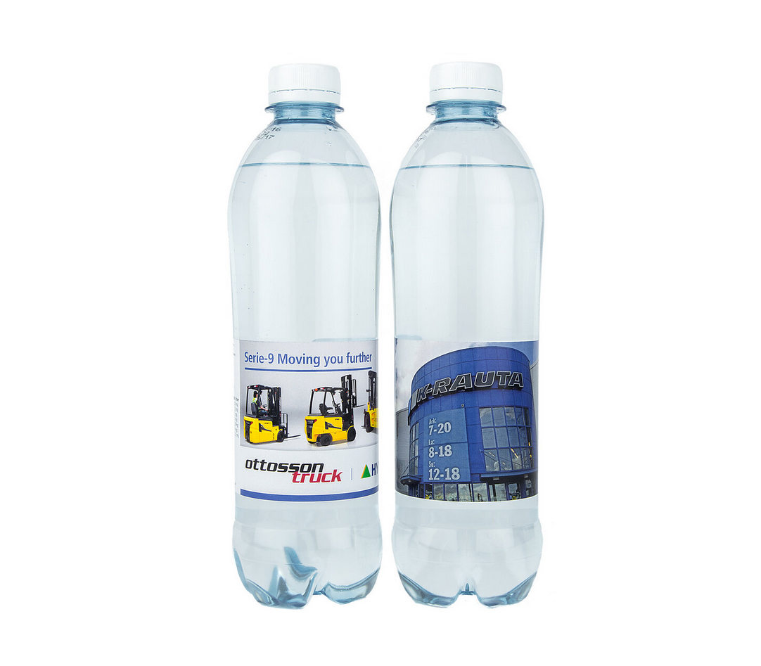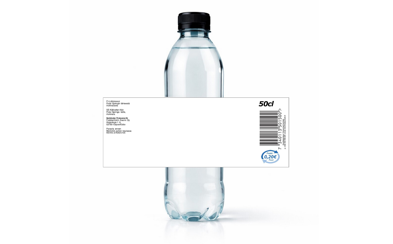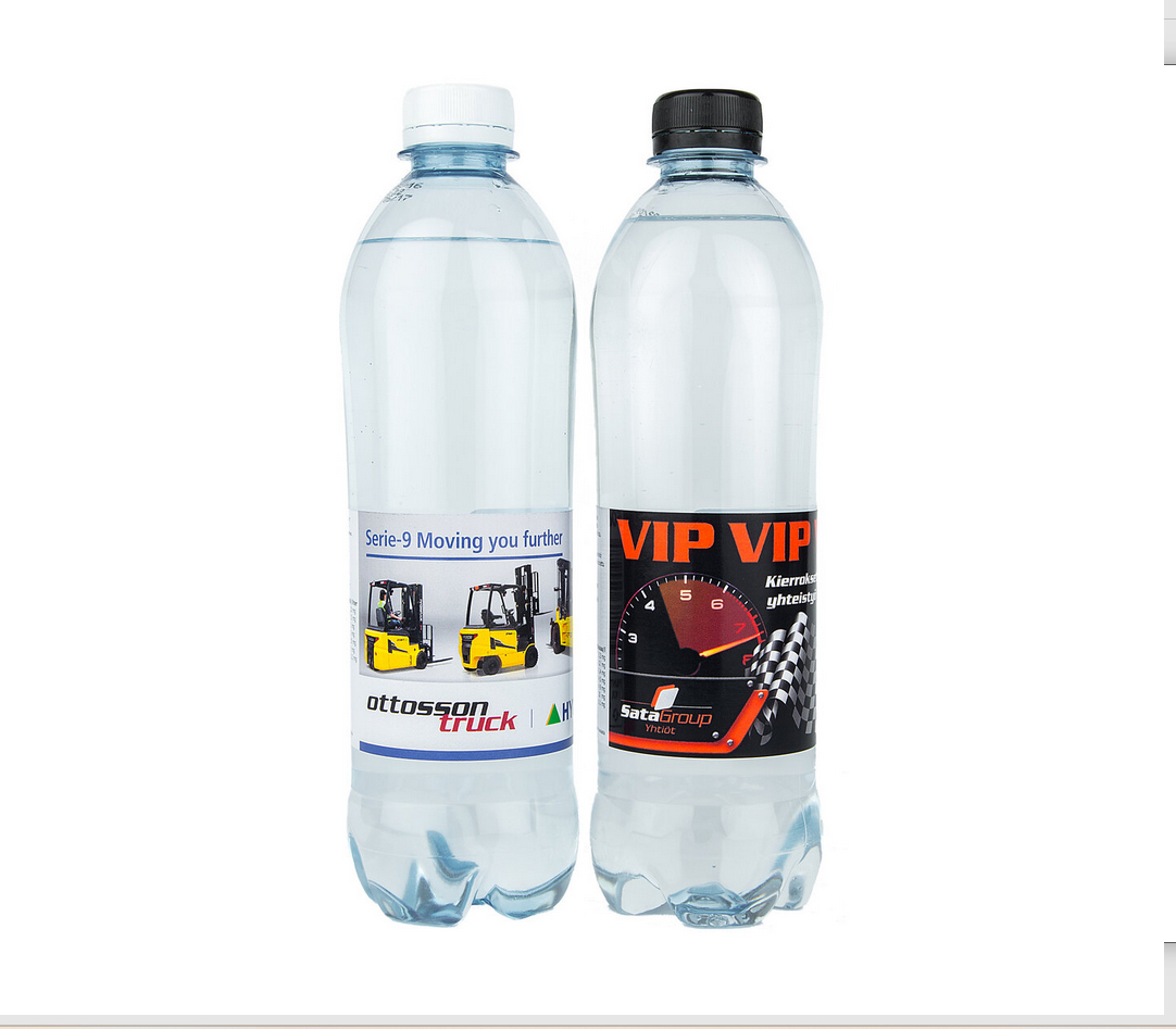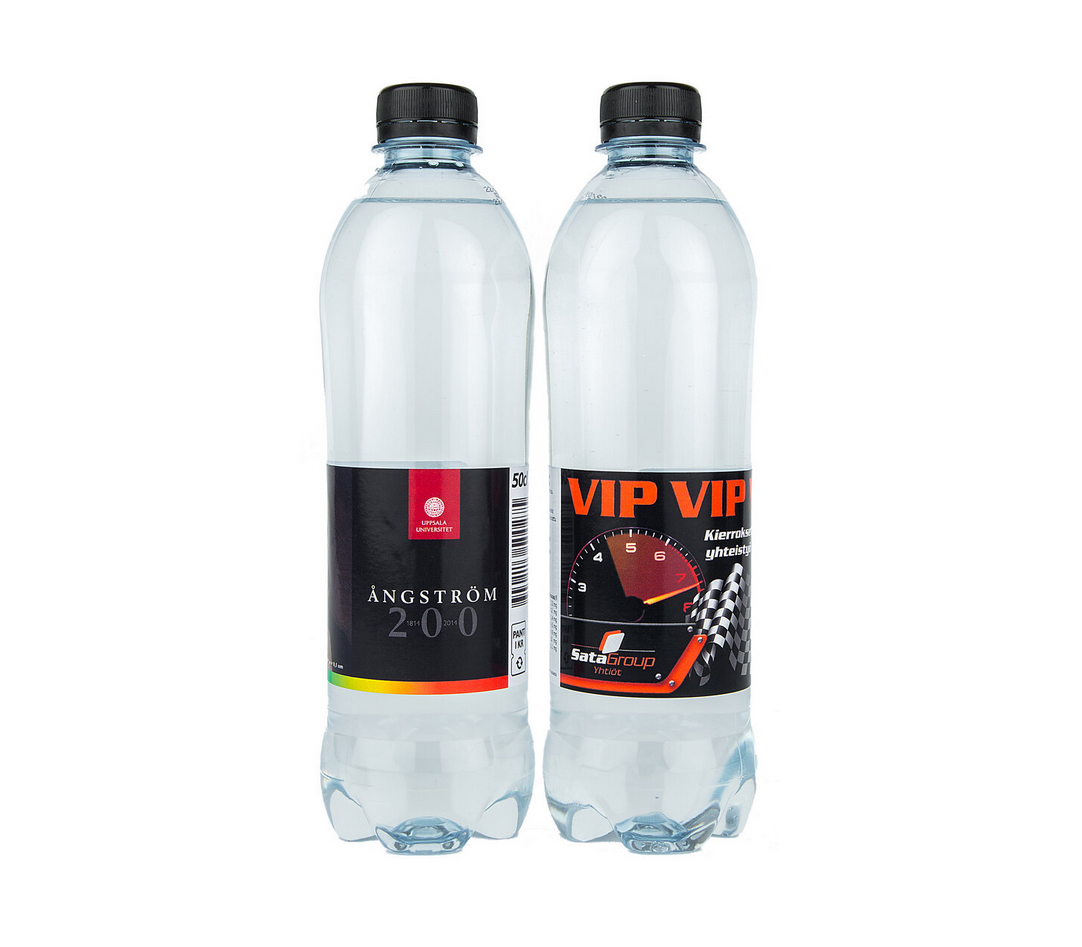 Kivistön lähdevesipullo 0,5L omalla etiketillä. Suomesta löytyy kenties maailman puhtain vesi. Kivistön lähteestä Asiakkalasta nostettu raikas lähdevesi sopiikin erinomaisesti tukemaan omaa mainosviestiä. Vesi saatavana hiilihapotettuna tai ilman. Toimitusaika alkaen n. 1 viikko ja kappalehinta sisältää CMYK painetun oman etiketin.