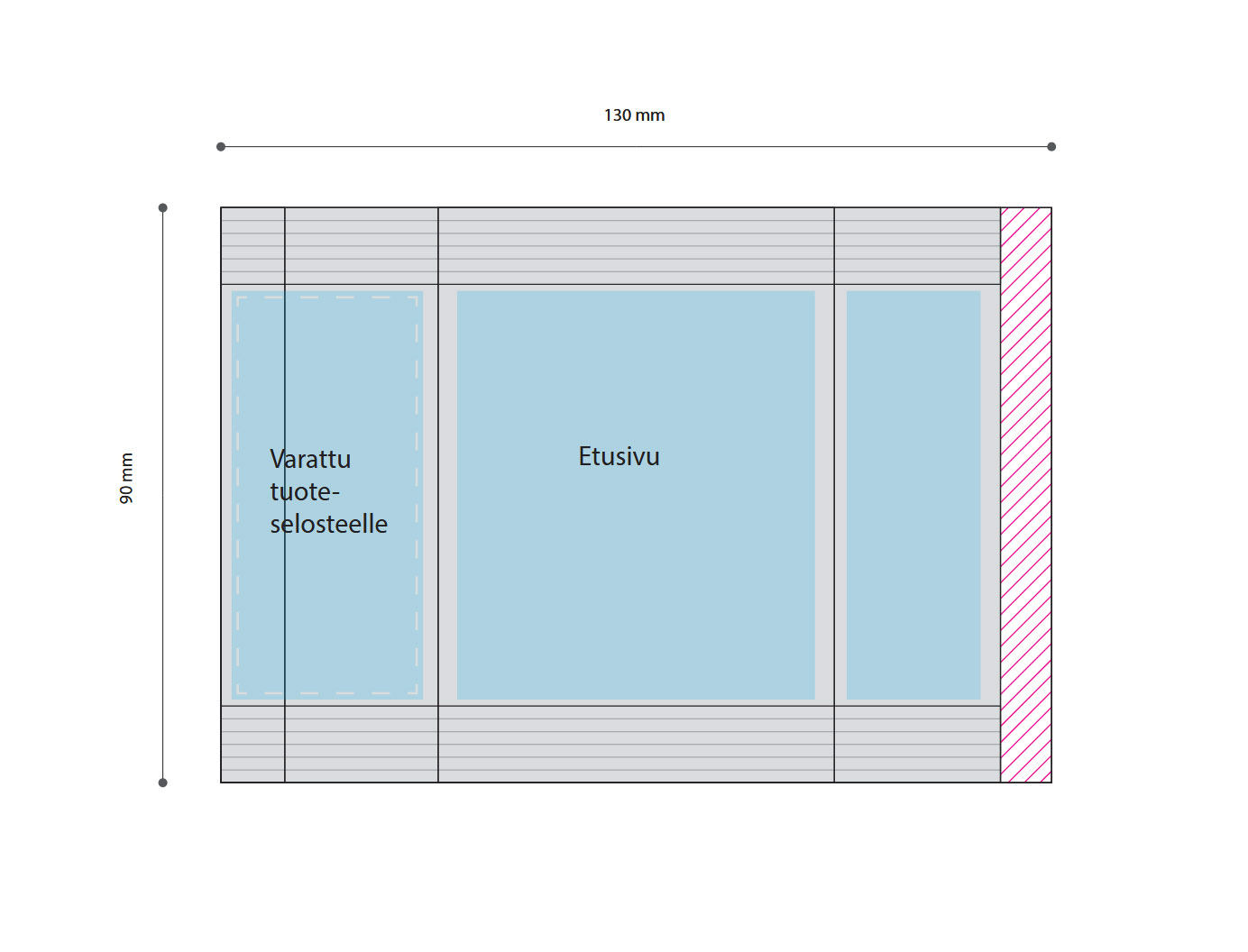 - Pussin mitat avattuna 90 x 130 mm, katso suunnittelupohjan kuva, kiitos