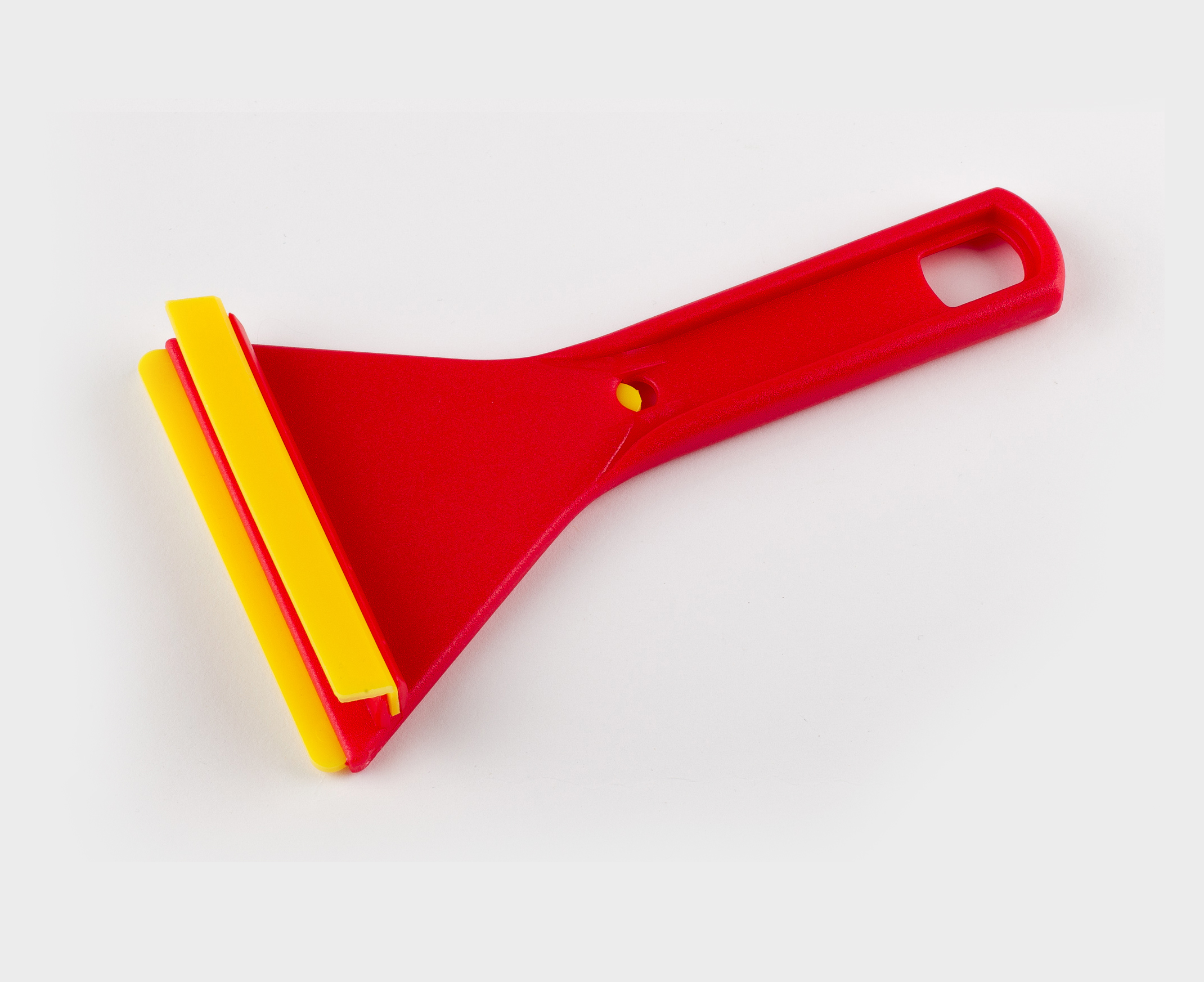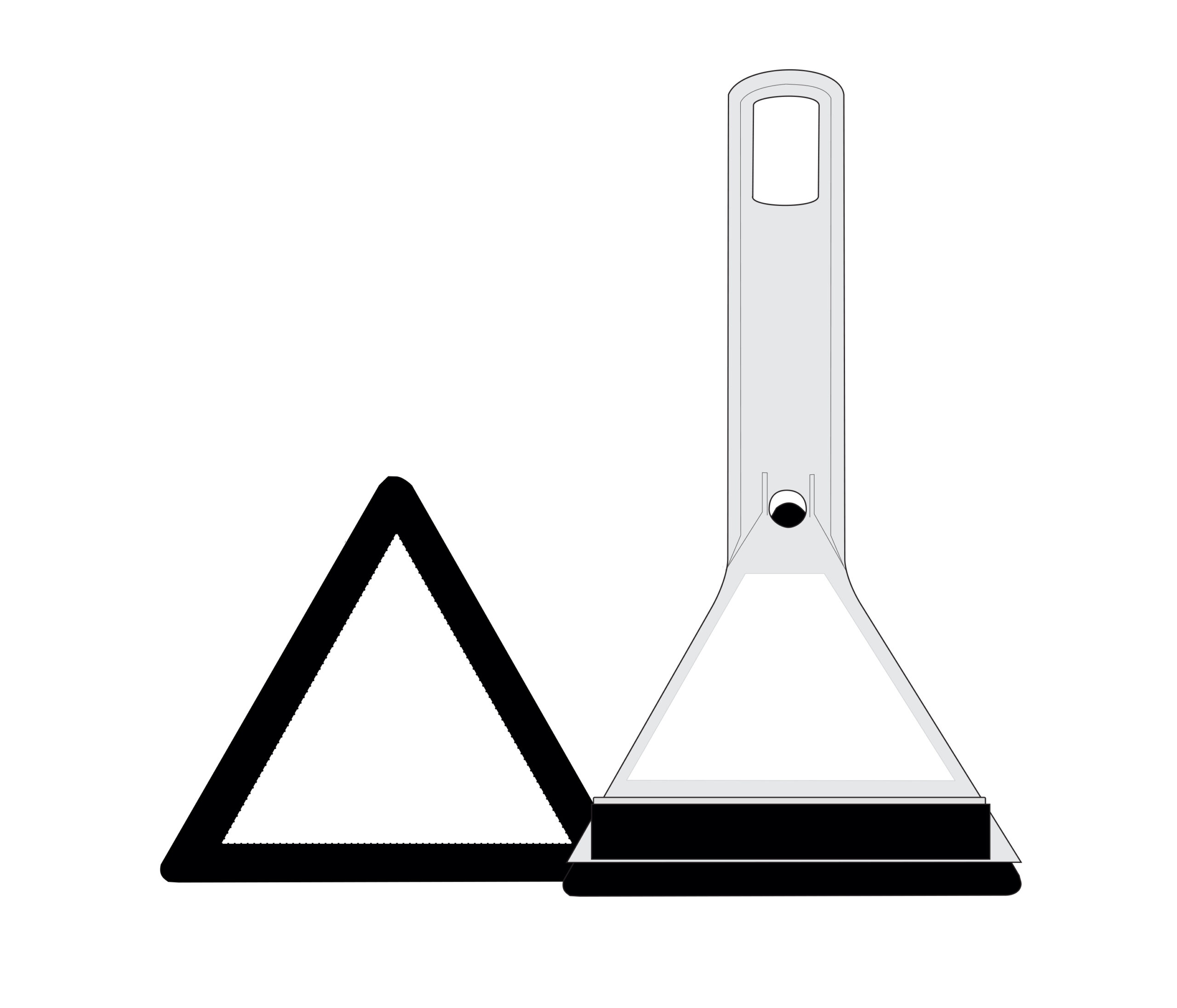 Murska ice scraper. The handle of this Finnish-made ice scraper provides a good grip when cleaning windshields. The product can be easily customized to match the image of the ordering company, as the color of the handle and triangle can be selected from a range of standard colors. Delivery time is approximately 2 weeks, and the example price includes a 1-color logo print on the handle of the product.