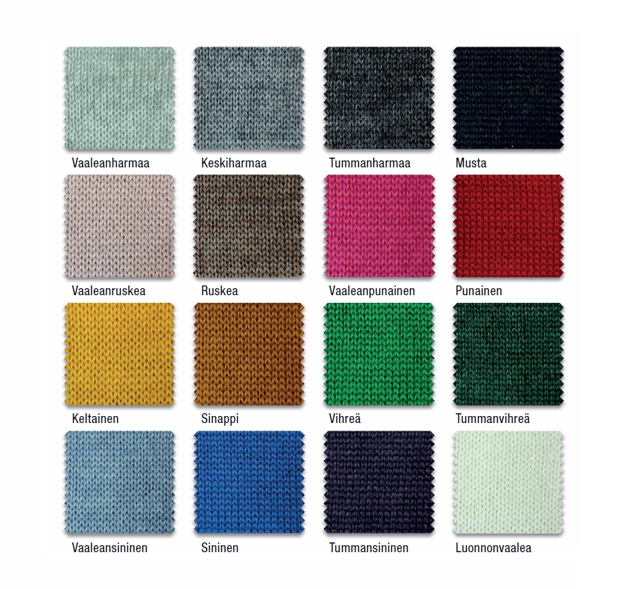 - Pipon värin voi valita 16 lankaväristä, katso värikartan kuva, kiitos